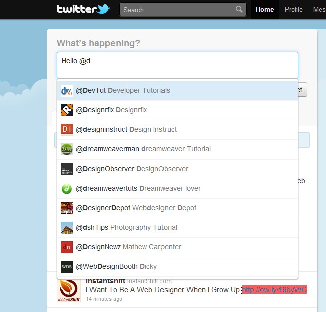 From now on, when you need to make a retweet or just tweet someone, you just need to enter the @ followed by the initial letter of the user and a dropdown list will instantly appear for you to choose the recipient.