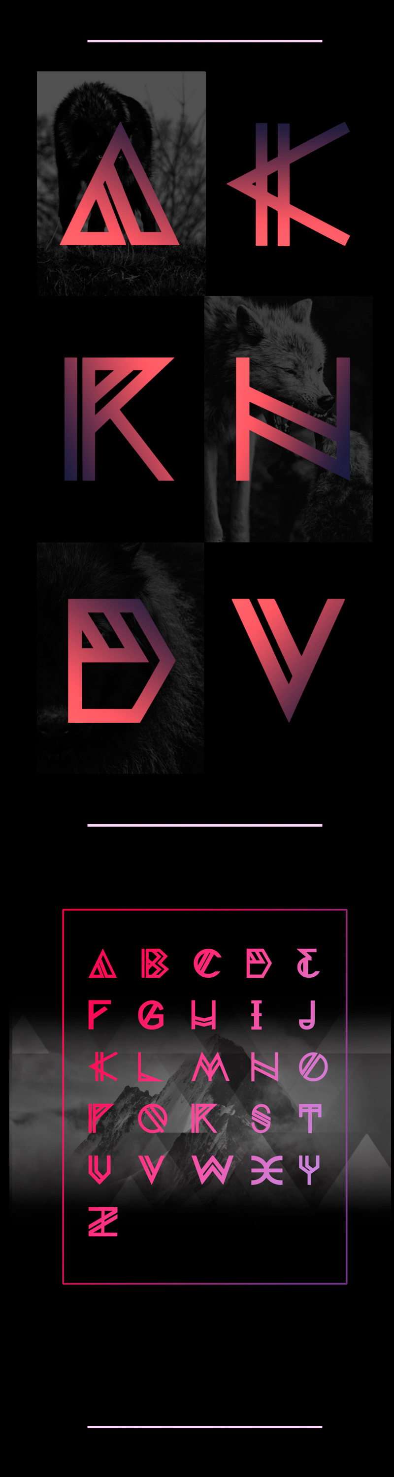 Nordic is a cool experimental font inspired by Norwegian runes. This font is only uppercase, and it includes numerals and basic punctuation marks. It also supports languages as Catalan, Danish, Dutch, English, Estonian, Finnish, Italian, Latvian, Norwegian, Polish, Spanish.