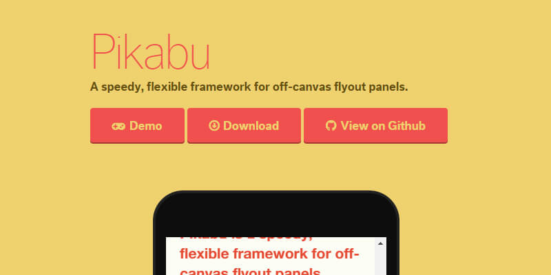Pikabu is a framework that will help you create off-canvas panels to complement the design of your mobile app or website. Among its features you can find: