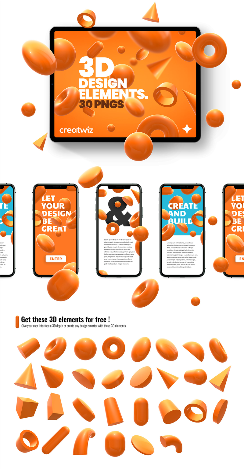 Orange 3D Design Elements – 30 Assets | Bypeople