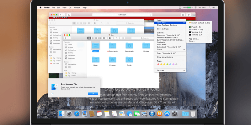 A Yosemite Sketch user interface kit including all the elements for the latest edition of Mac OS X. Within you can find accurate components, totally free of charge, retina ready and future-proof, which mean you’ll get updates when they’re released.