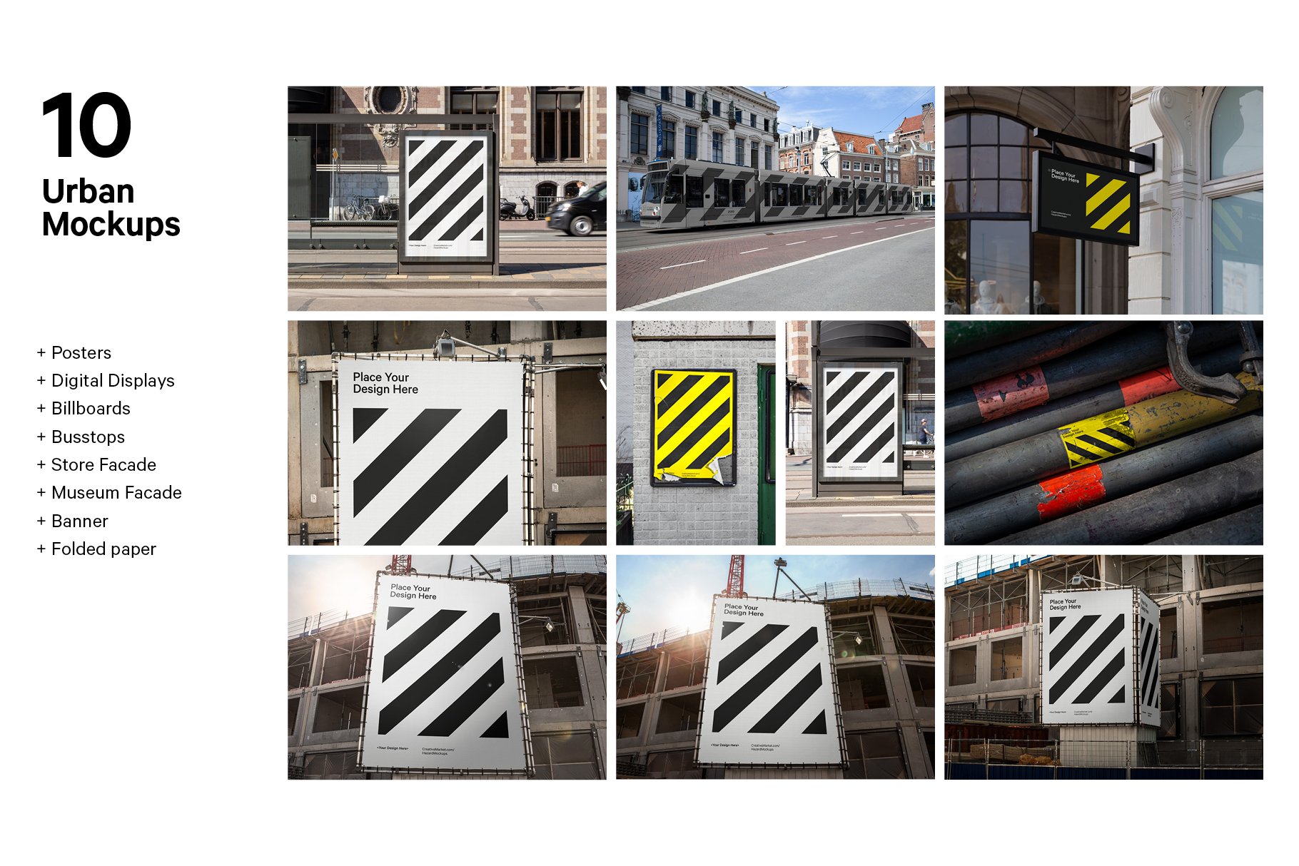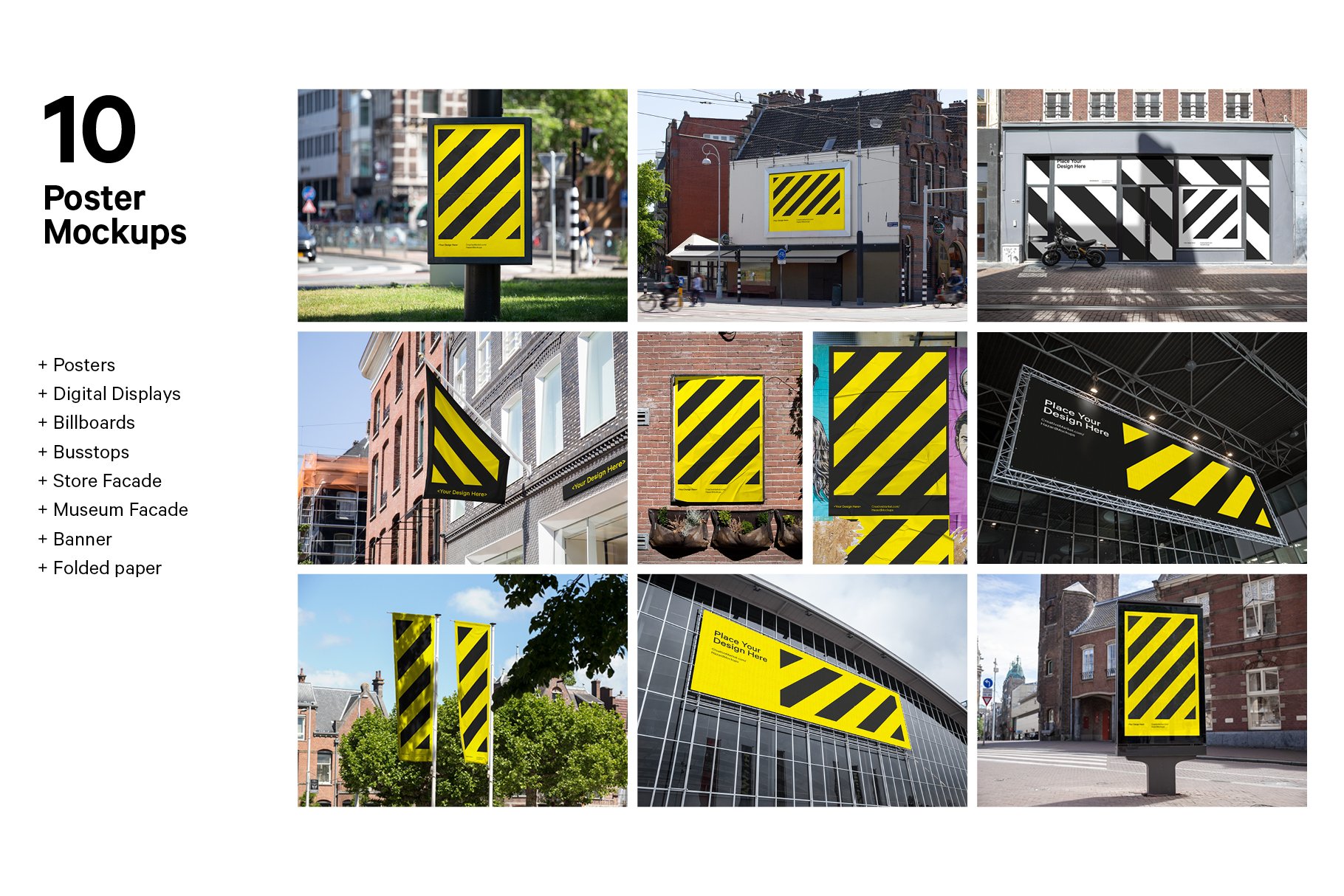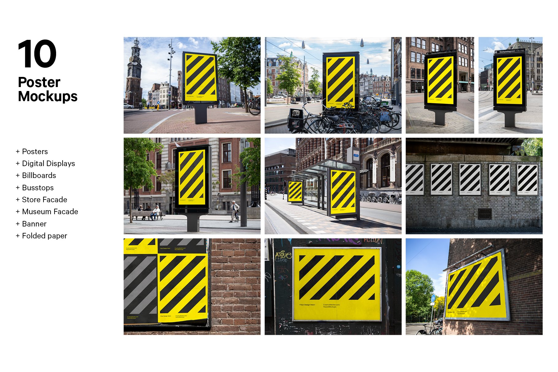All new bundle deal for a collection of outdoor poster mockups including bus stop posters, large billboards, building facades, city posters, walls & many more!