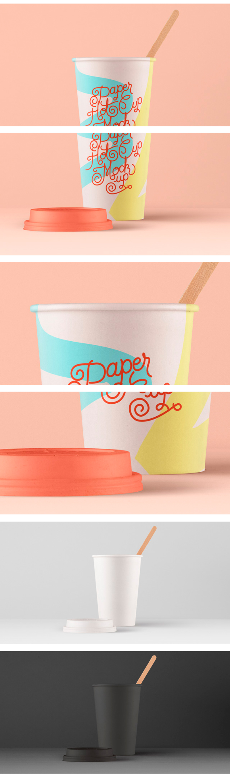 A beautiful PSD mockup on this volume featuring a paper hot cup with its lid on the side, and including a wooden stick as an extra cool feature, it is editable to suit the needs of your design.