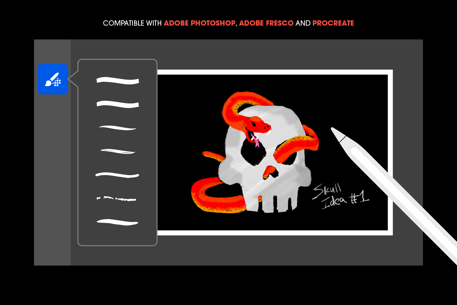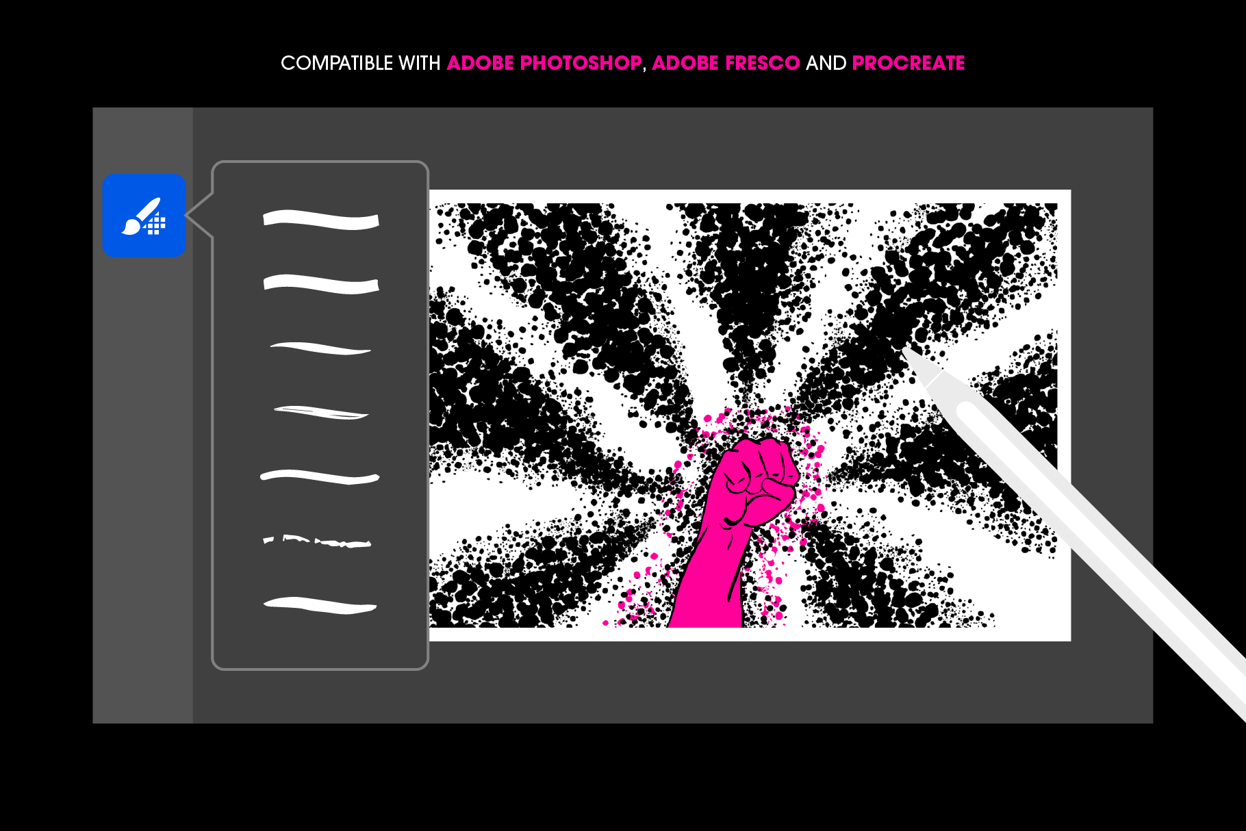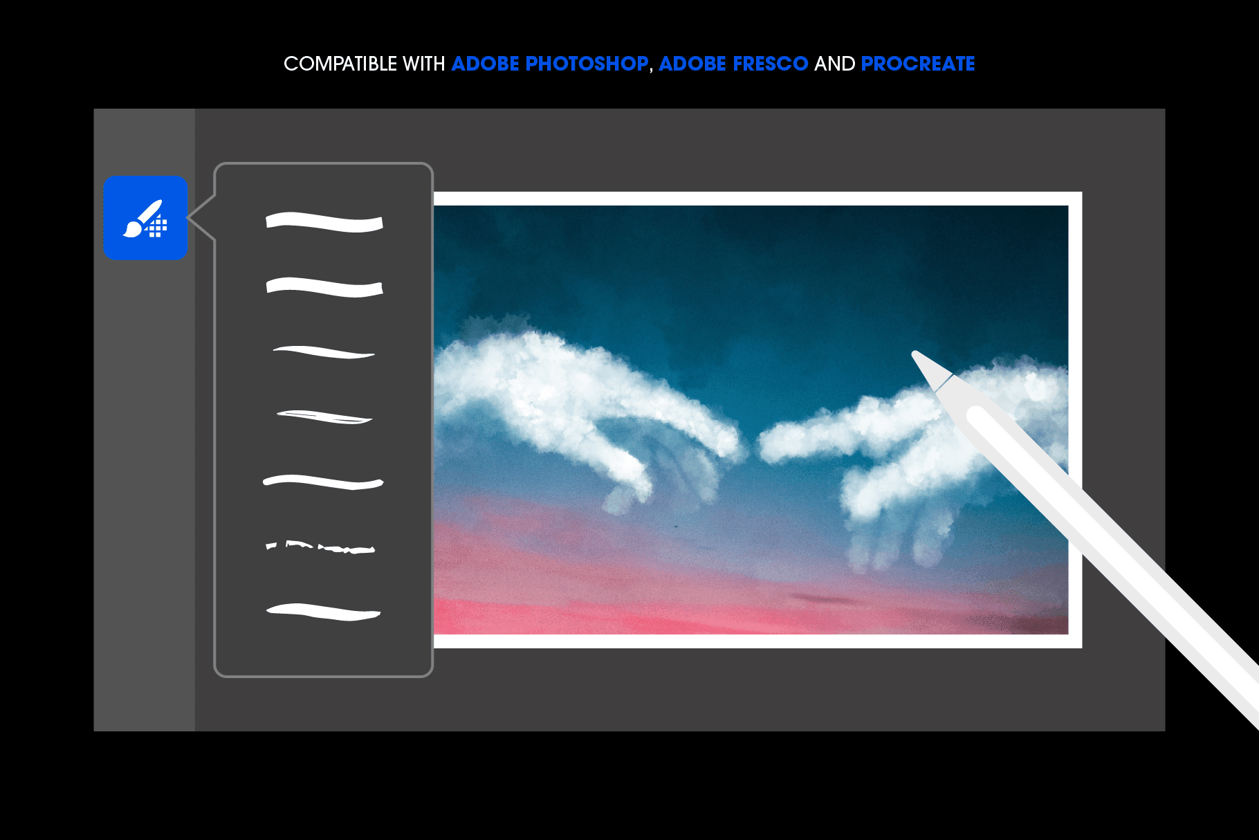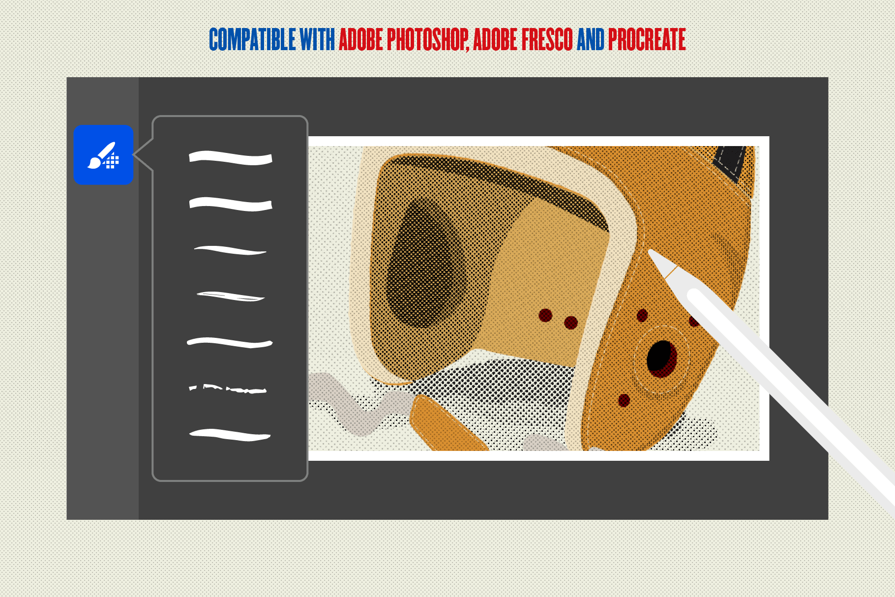 - Compatible with Adobe Photoshop, Adobe Fresco and Procreate