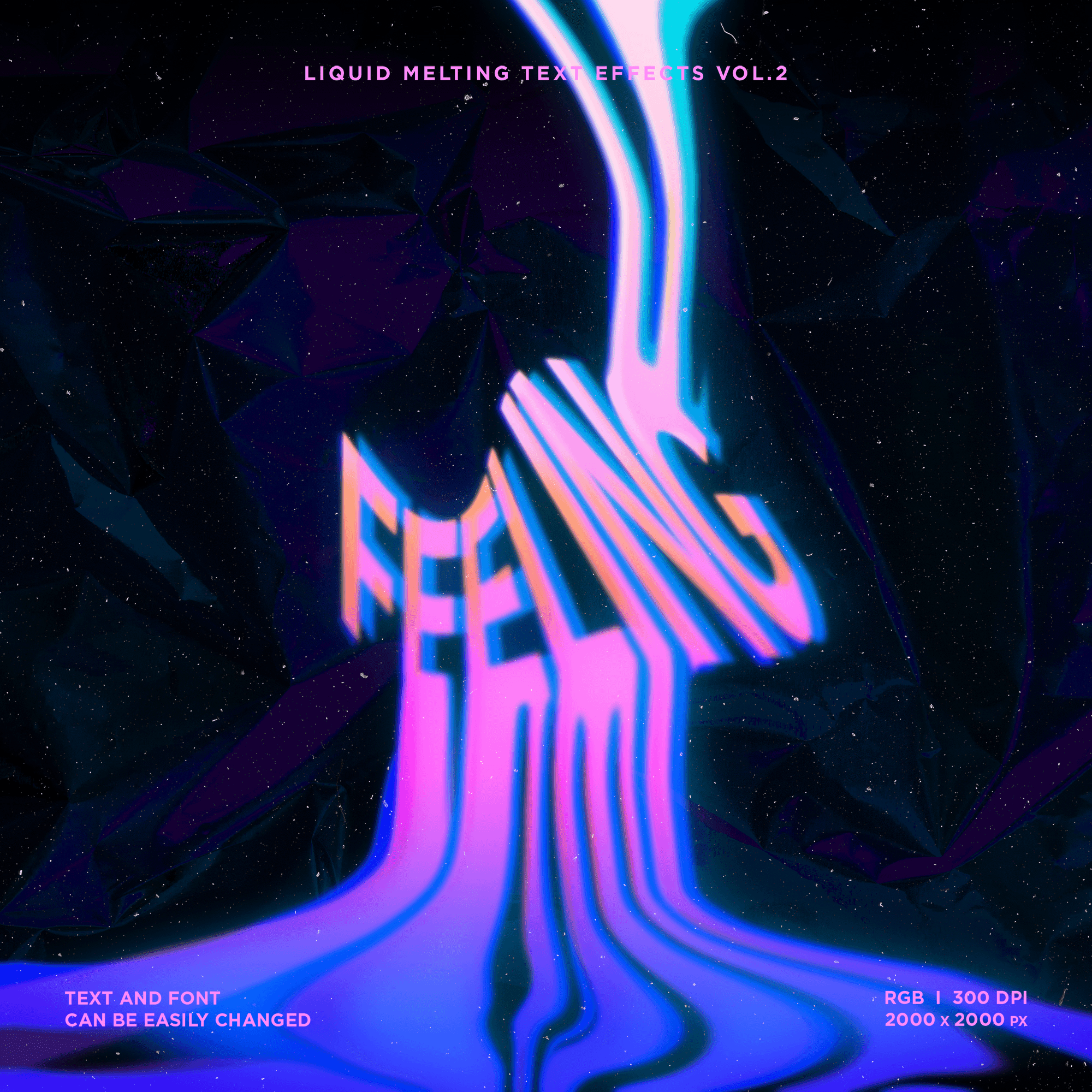 The collection contains 3 sets of templates, with 30 PSD files in total – each file features a unique text effect ranging from colorful melting liquids, twisted spirals, deformed/distorted shapes, glitched text effects and many others. The templates are fully editable and contain several layers where you can manipulate every aspect of the effects: change their shapes, colors, sizes, fonts, texts, textures and more