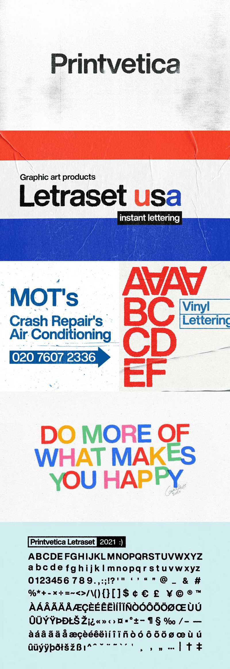 Printvetica is a typeface with an old fashion look based on old Letraset and posters that is perfect for vintage & retro designs. Find out more Vintage Fonts.