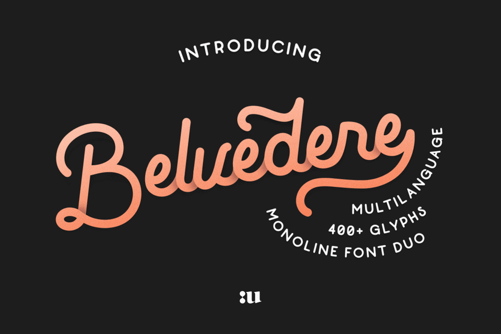 Belvedere is a mono-line font duo which has been inspired by the typography style of two important decades, the never outdated 40’s and 50’s. This vintage font family is composed by a mono weight cursive script and a complementary sans-serif. All the characters have been designed to enhance the overall smoothness, which is undoubtedly useful to maximize the readability.