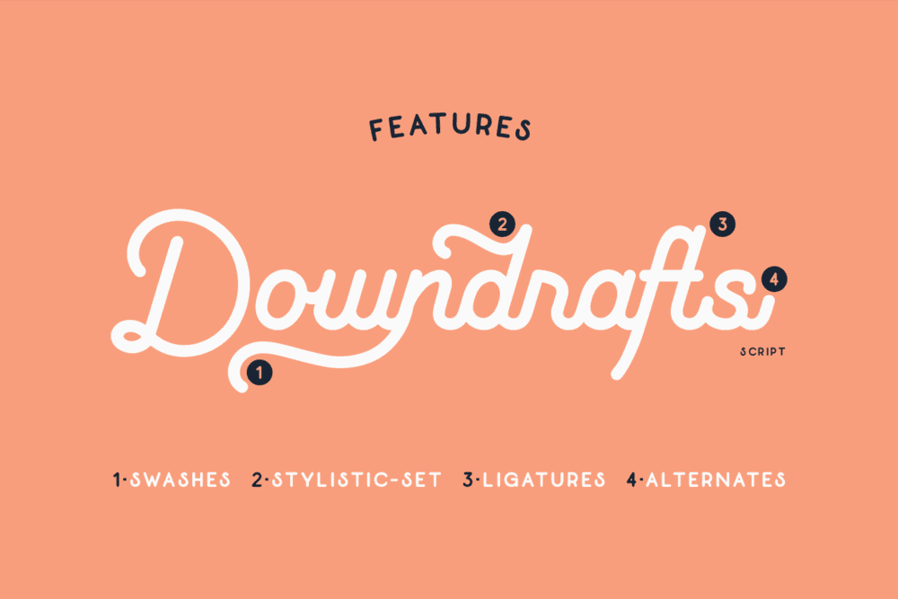 Every OTF font features multi-language support and a variety of OpenType features like ligatures, stylistic alternate character sets, numerals, old style figures, swashes and more.