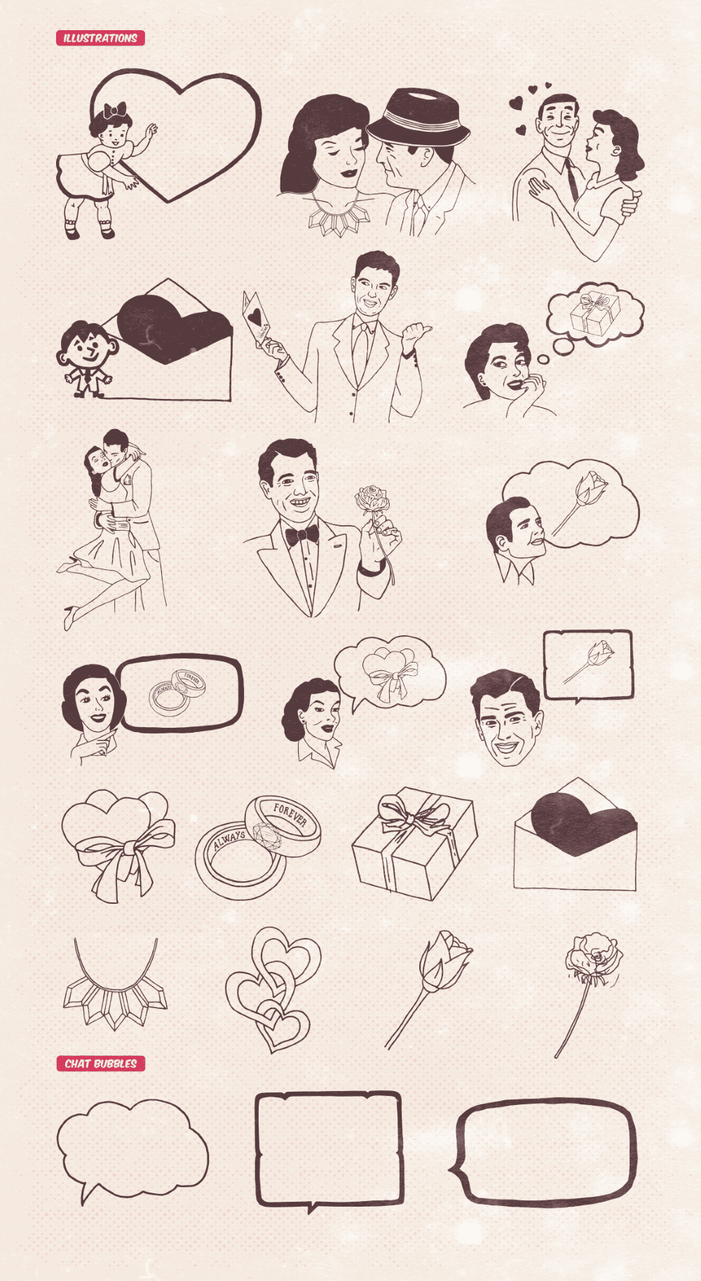 - Fonts include vector shapes, patterns and decorative elements in AI format