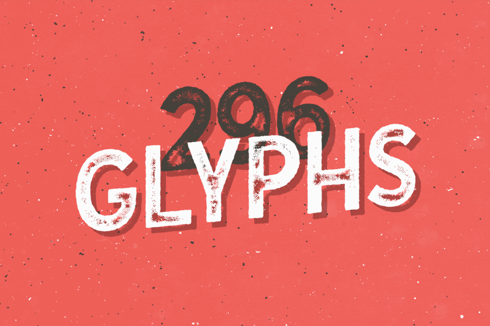 Ballyhoo contains more than 350 glyphs and covers several languages based on the Latin alphabet; the quirky experience is enhanced with OpenType (OTF) support including some neat ligatures.