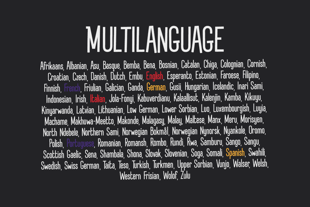Featuring an extended characters set with more than 200 glyphs and covers several languages based on the Latin alphabet.