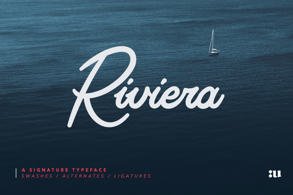“Riviera” also offers a beautiful typographic harmony with more than 400 characters and covers several languages based on the Latin alphabet; the whole font design has also been completed with several alternates, 57 whooping natural looking ligatures and some attractive swashes.