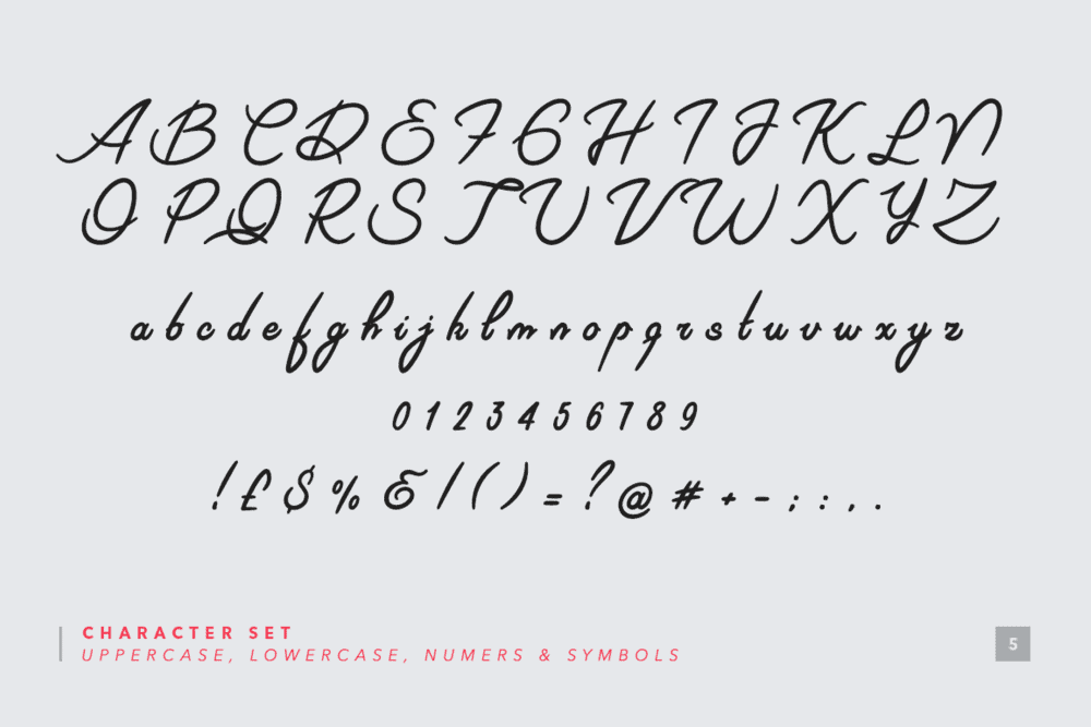 A modern and elegant signature font that has been crafted with gentle curves and sophisticated strokes. This fancy mono weight calligraphy font has been attentively designed to look as close to a natural handwritten script and it is undoubtedly ideal for any ecommerce brand, blog, social feed or any modern business that wants to appear distinctively. Use it indistinctly for adding a unique touch to any branding project!