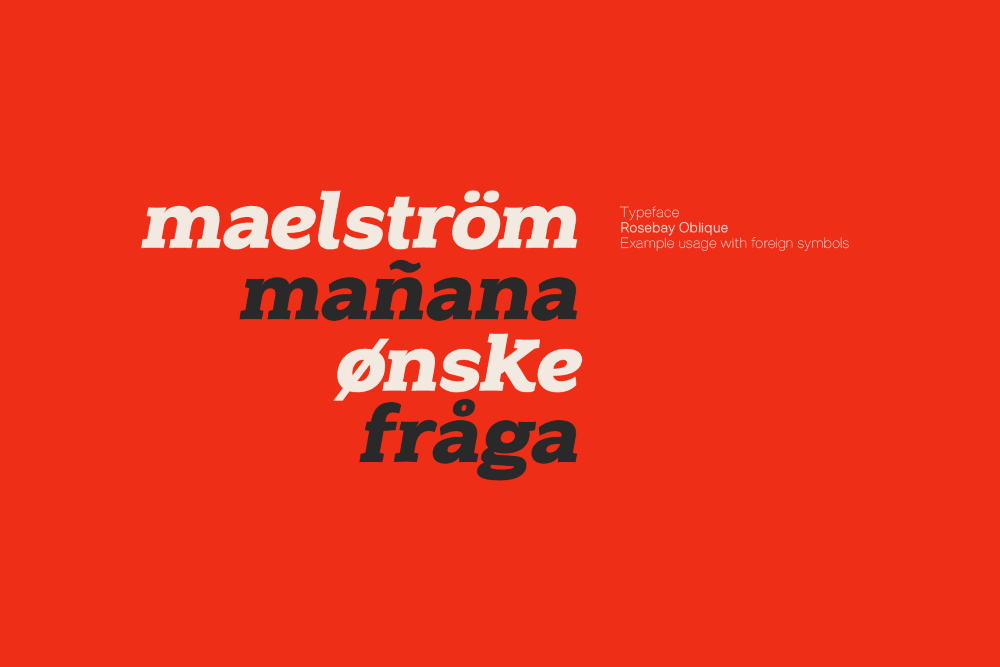 “Rosebay Slab” includes its matching oblique and covers several languages based on the Latin alphabet