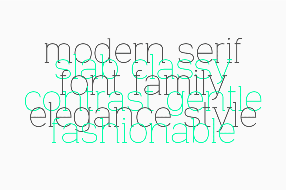 - Different styles included: serif, slab-serif, sans-serif, mono, cursive,