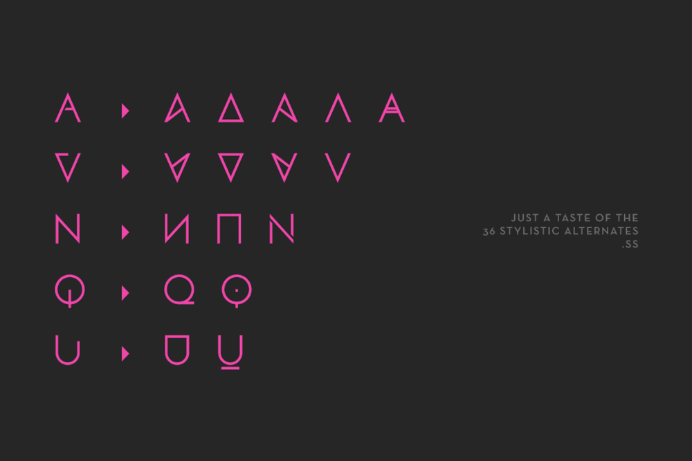 Vesper is the new all caps geometric sans in 2 weights plus matching obliques. Each weight features three exclusive styles that can be also layered together with harmonious appearance.