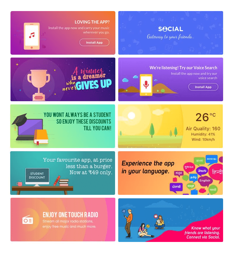 A set of 10 promotional banners for branding/ads composition in Sketch file format. The banners have different layouts and color combinations to set the mood and feeling of your brand but also maintain a general material style that gives them a modern feeling. Created by Dribbble user Anchita.