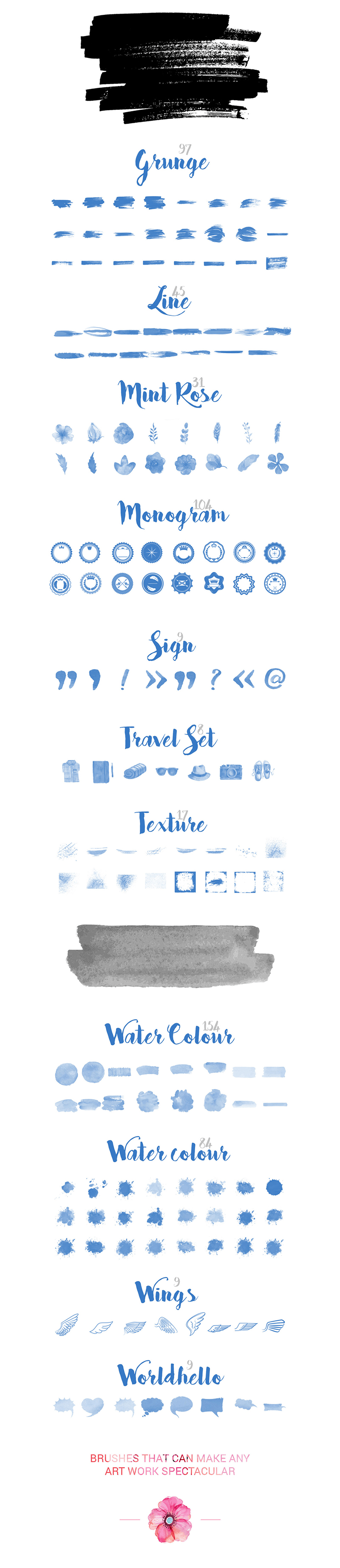 - Easy placement, simply install the ABR brush files, then drag & drop from the brush panel!