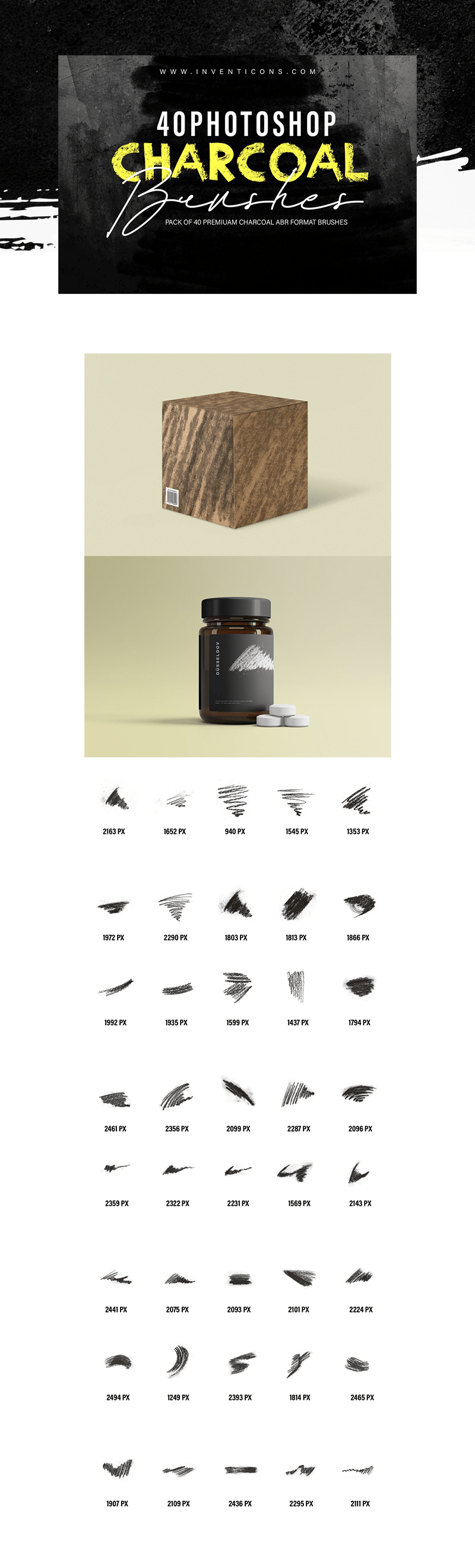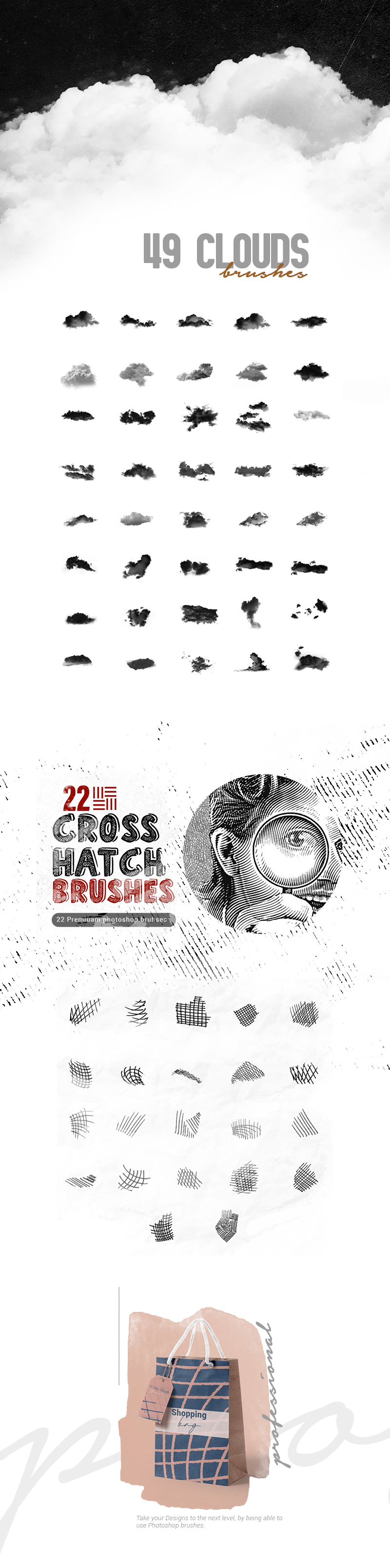 The brushes are all delivered separated by category in ABR file format and are super easy to work with simply install the ABR file of the desired brush category and drag/drop the brush you want from Photoshop’s brush pane!