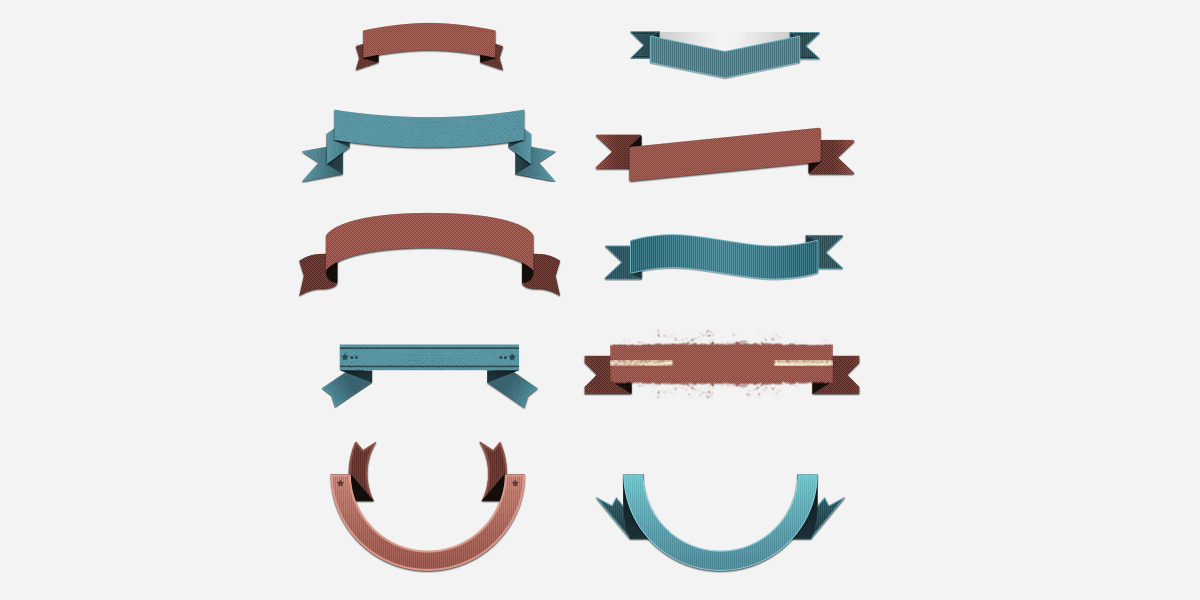 A huge package with more than 100 different ribbons in PSD, all Photoshop files contain layers that can be easily edited. It also includes 30 color variations.