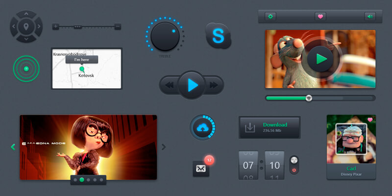 Putty is a gigantic set of UI elements created by Dribbble’s Alexey Anatolievich. The styling is fantastic, using a solid dark background that poses as a great foundation for all the neon effects and vibrant colors found on the UI elements themselves.