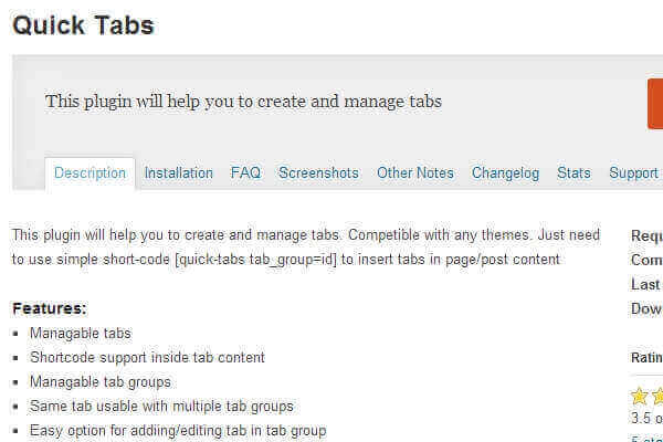 This plugin will help you to create and manage tabs. Compatible with any themes. Just need to use simple short-code [quick-tabs tab_group=id] to insert tabs in page/post content.