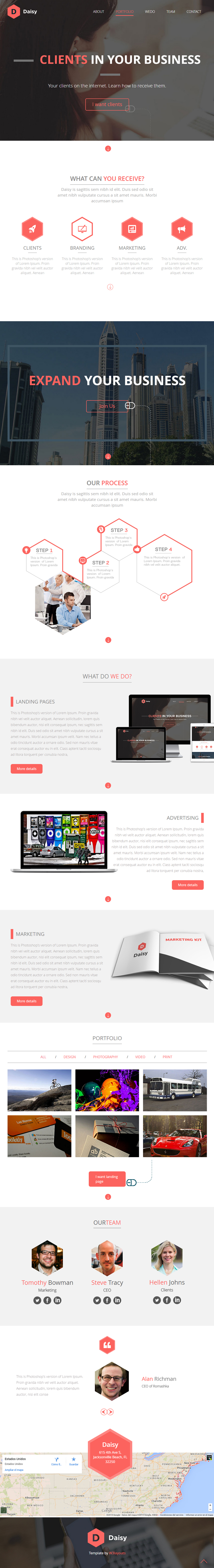 Daisy is a appealing one-page template for Bootstrap created designed in a flat style and based on hexagonal shapes and elements. This template features minimal improvements and page scrolling effects for each section.