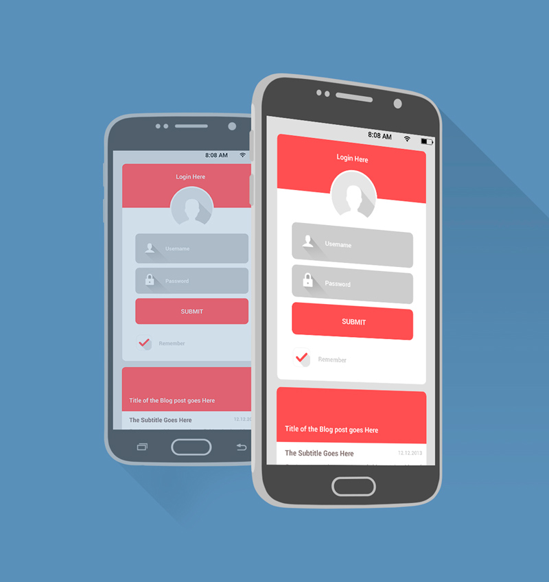 A responsive template for a user interface made in PSD format in a minimal style. The template includes editable vector elements like buttons, user bubbles, backgrounds, radio buttons and more, all of them in multiple resolutions.