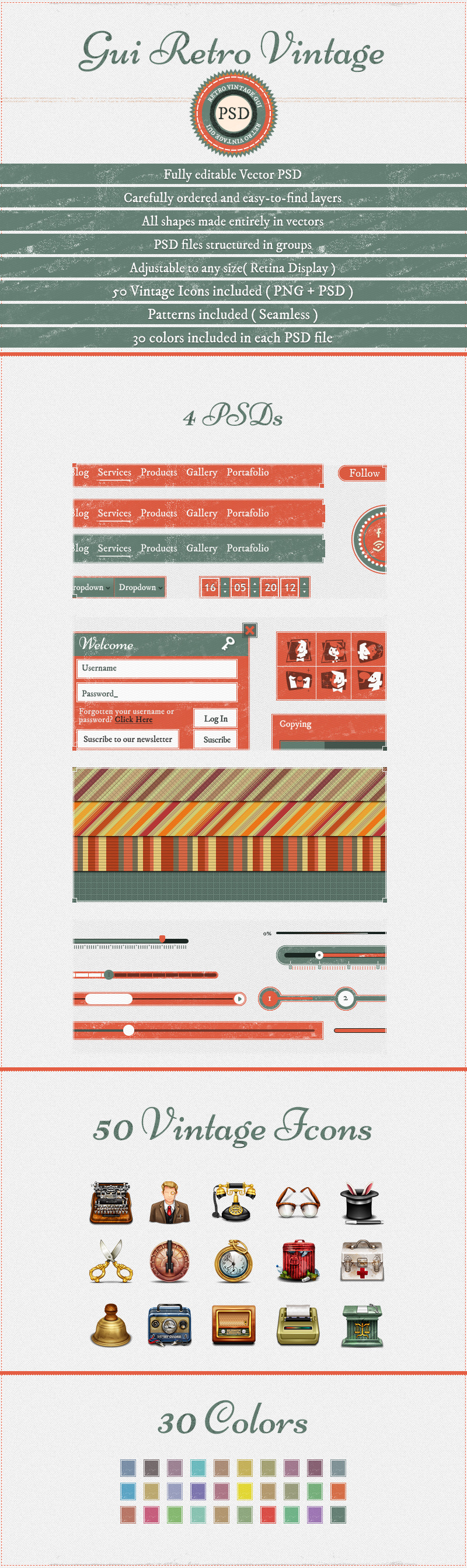 Retro Vintage PSD GUI Set