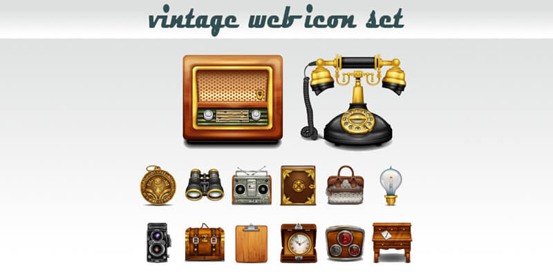 A set of 50 icons crafted in a very retro and vintage style and realistic feel. All of the icons come in Illustrator format and 256px PNG files. Some of the icons featured are an old telephone, compass, lightbulb, and a radio.