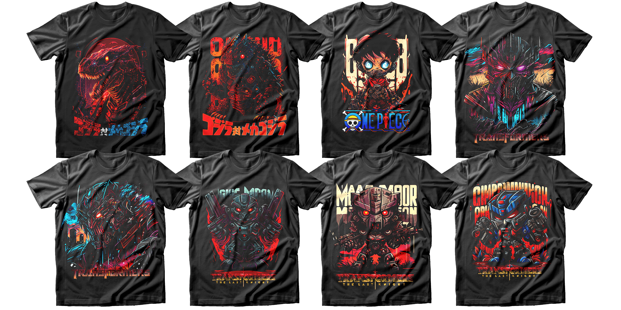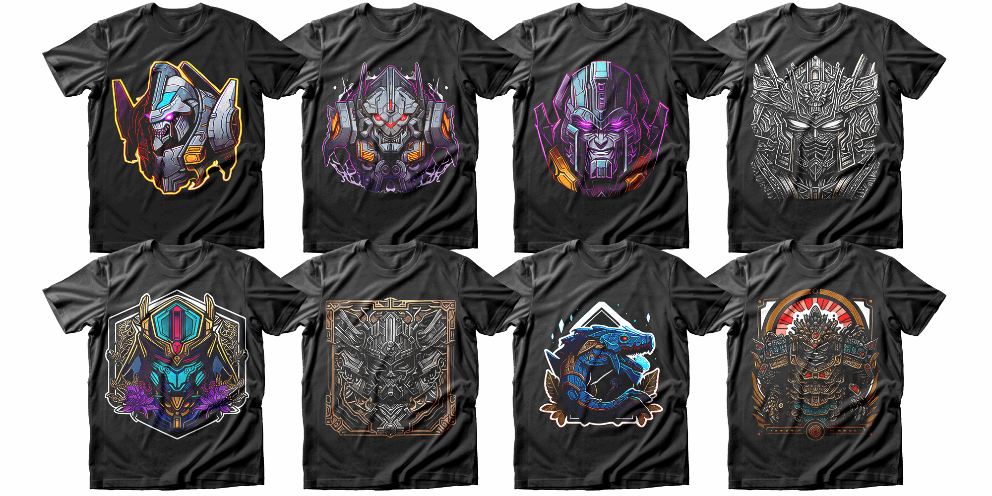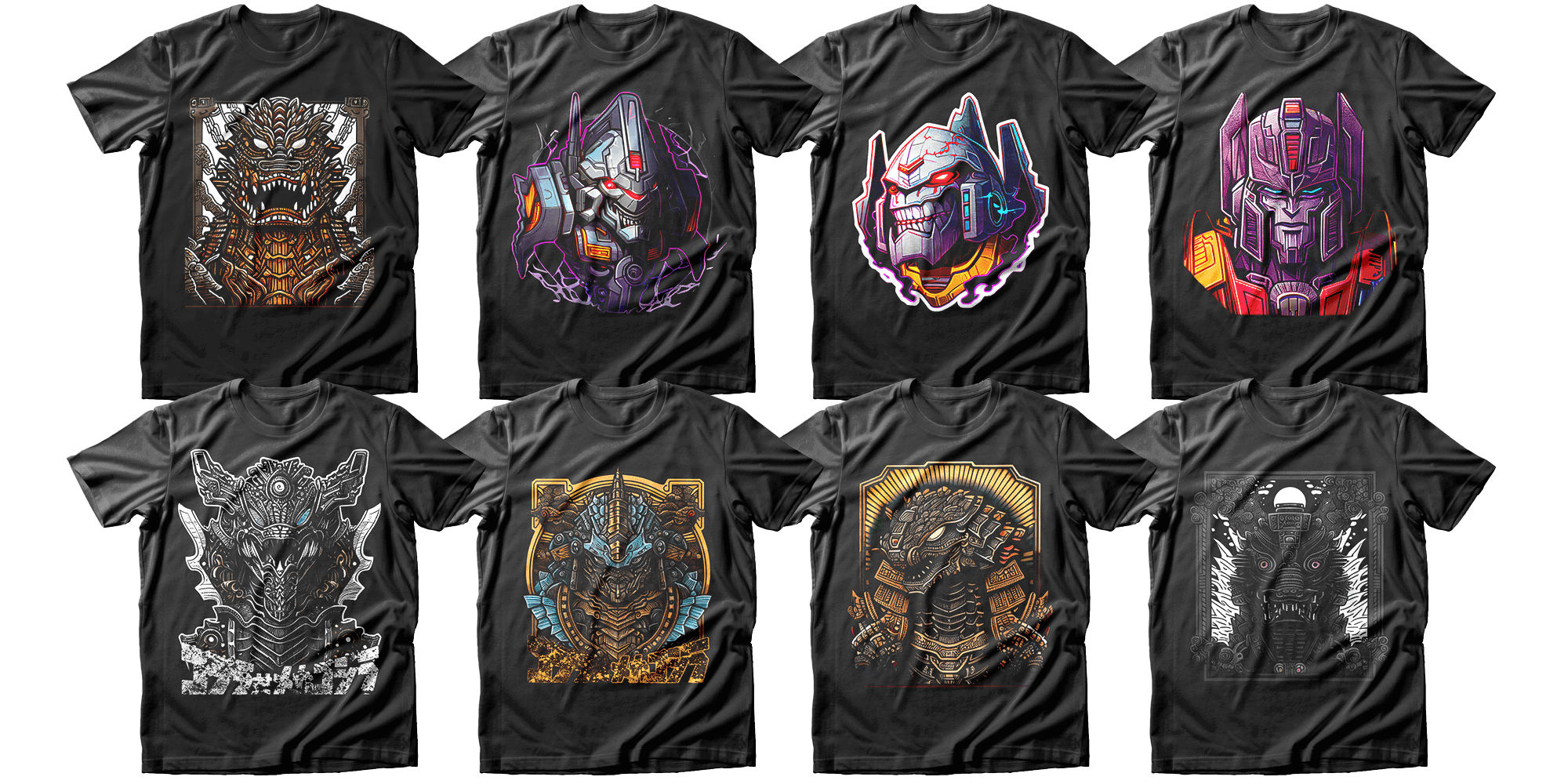 We’ve brought you an all new collection of illustrations for merch with 50 unique Robot t-shirt designs featuring mech character designs based on popular media like Transformers, Pokémon and Sonic the Hedgehog, as well as original concepts, delivered as print-ready illustrations that you can use straight out of the box.