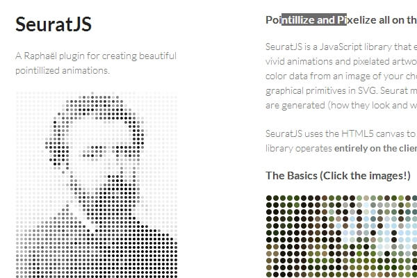 SeuratJS – A Raphaël plugin for creating beautiful pointillized animations.