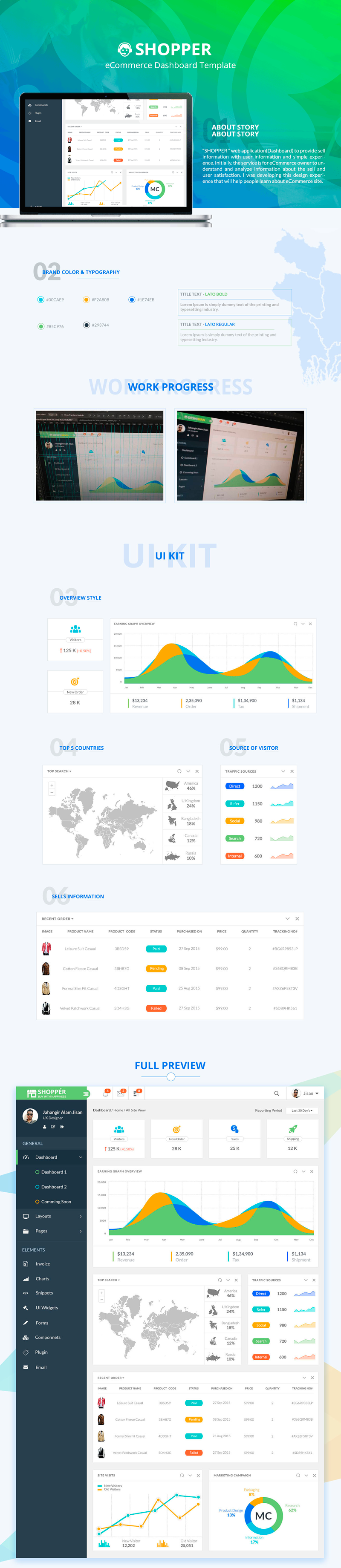Shopper is a web application dashboard on PSD. It provides sell and user information with a simple experience. The service is for the eCommerce owner to understand and analyze information.