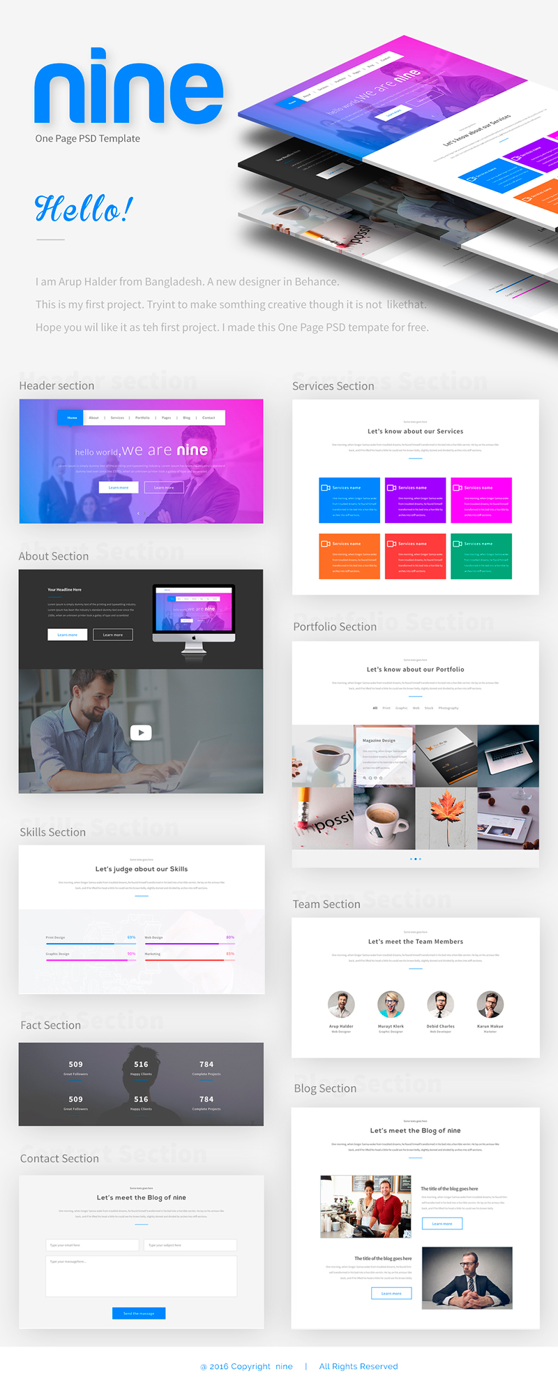 Nine: Simple One-page PSD Template