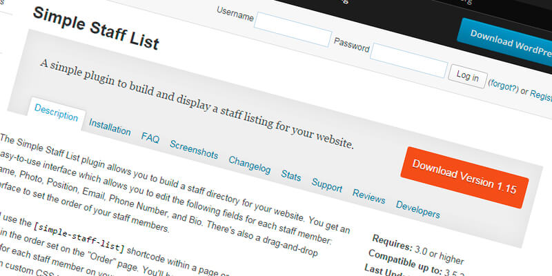 A particularly useful tool for businesses that hire personnel, this plugin allows you to create lists with your staff and include information such as name, photo, position, email, phone number, and bio. An intuitive drag and drop interface makes order changes an easy task. It is also possible to add your own CSS styling.