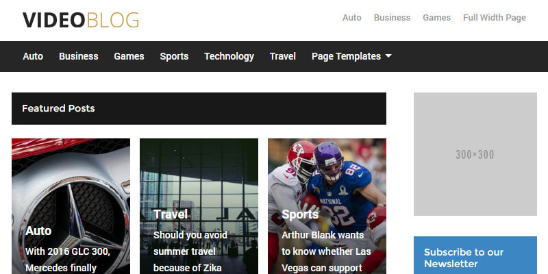 Videoblog: Simple Video-focused WordPress Theme