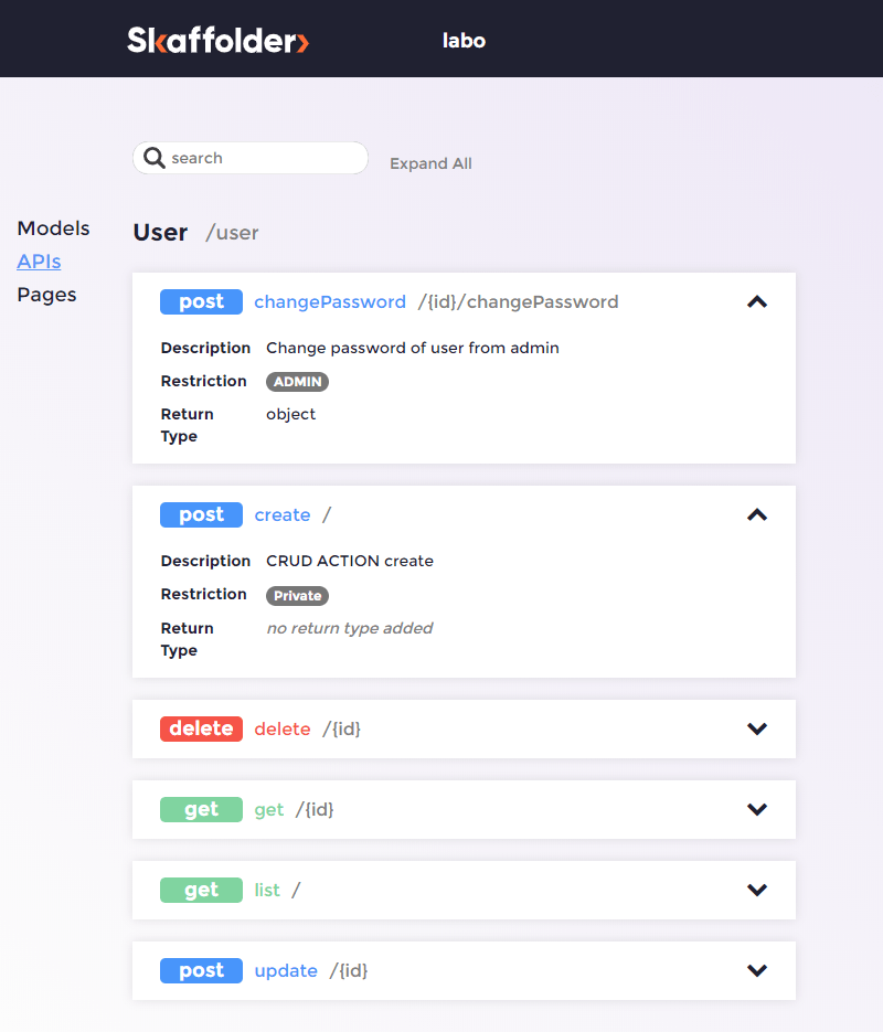 Get Model, API & Page documentations automatically – everything gets generated in an intuitive interface