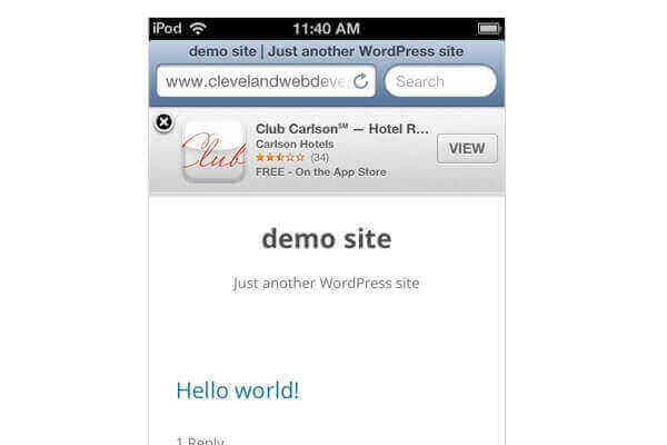 Automatically implement Safari’s new Smart App Banner feature on your WordPress site. The banner provides a standardized method of promoting apps on the App Store from any website. The banner by default will appear on all pages. In order for this to work you have to enter your app id in Settings > Smart App Banners > Your App ID.