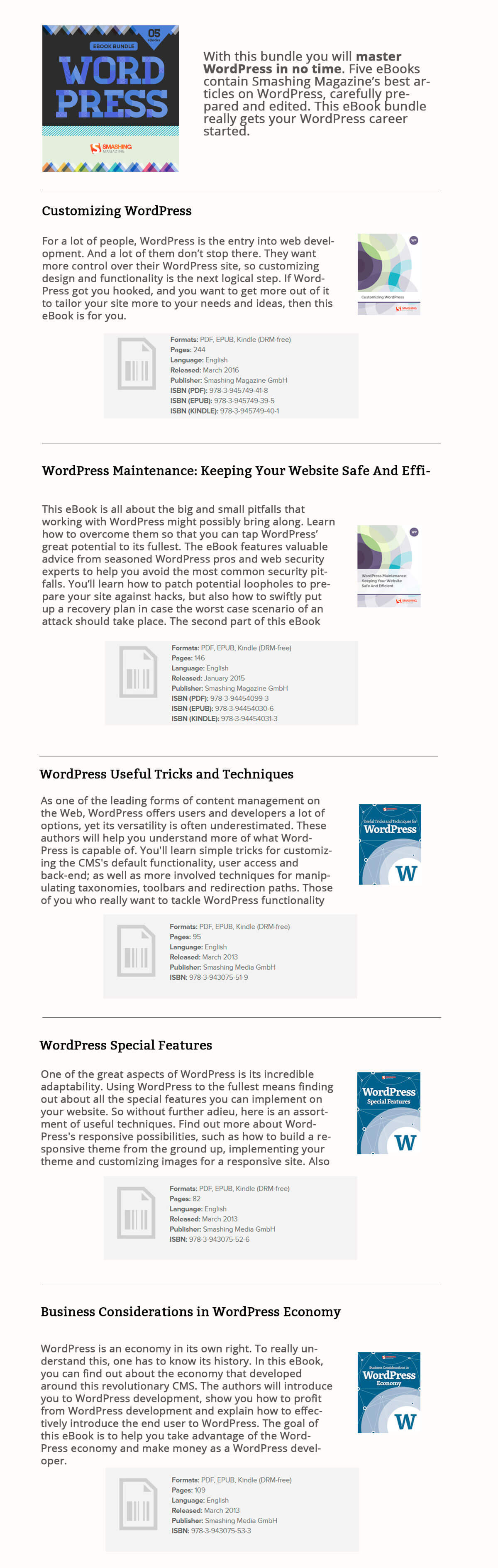 This right here folks is the ultimate knowledge treasure regarding Web Design. Take into account that you’re taking home all the Smashing eBooks including Hardboiled Web Design, Making It Right (which became the #1 bestseller in 3 categories on Amazon), Apps For All by Heydon Pickering, Smashing Book #5, Smashing Book #4, and other books featured in the ebook bundles on the same site! These are the main features if you’re still doubting about it!
