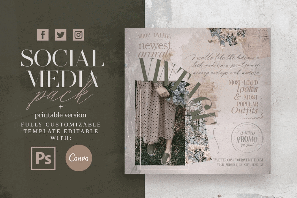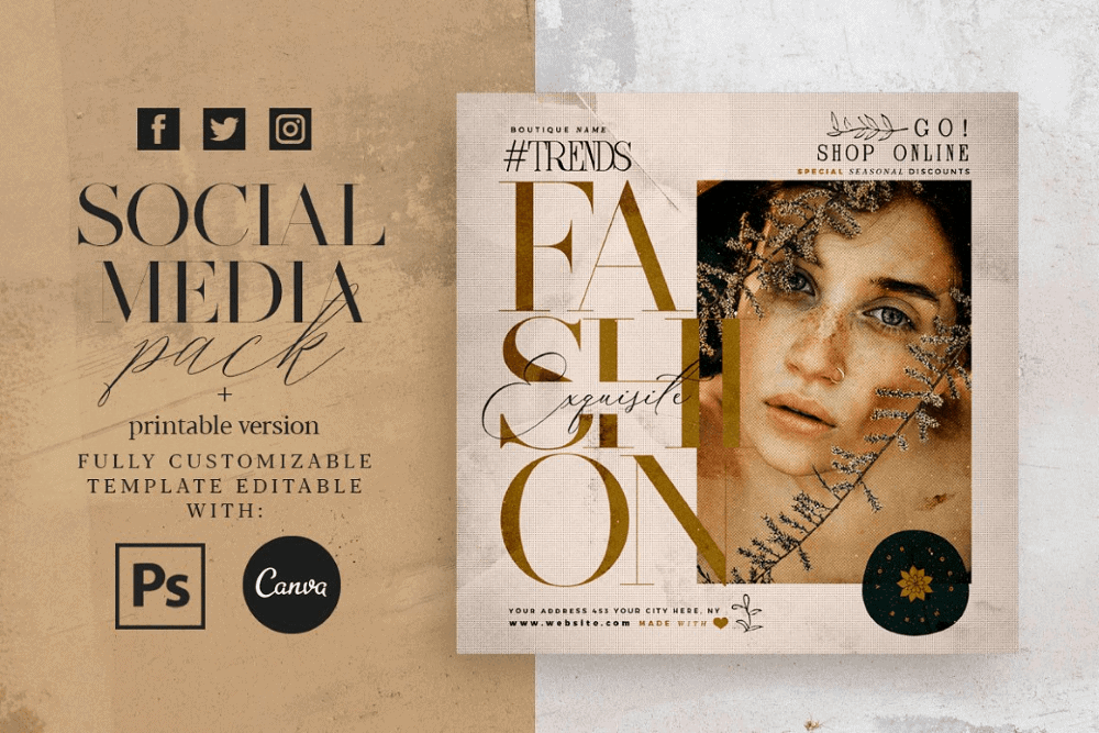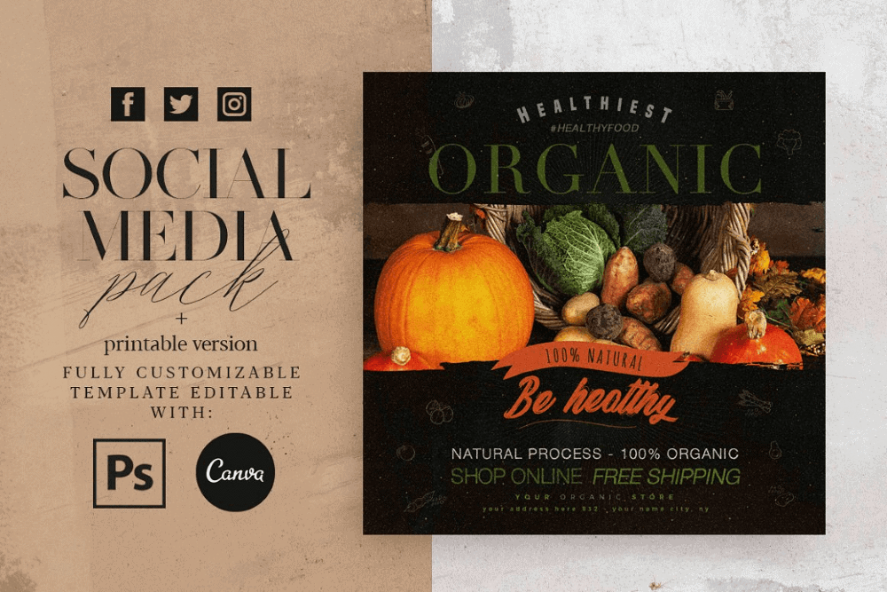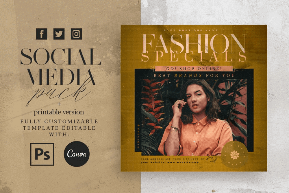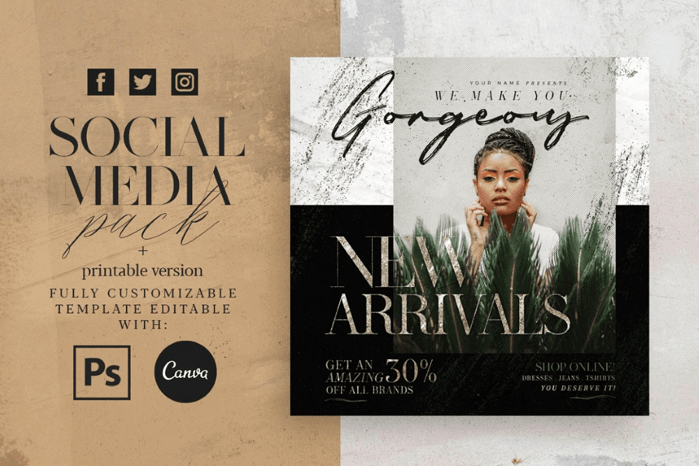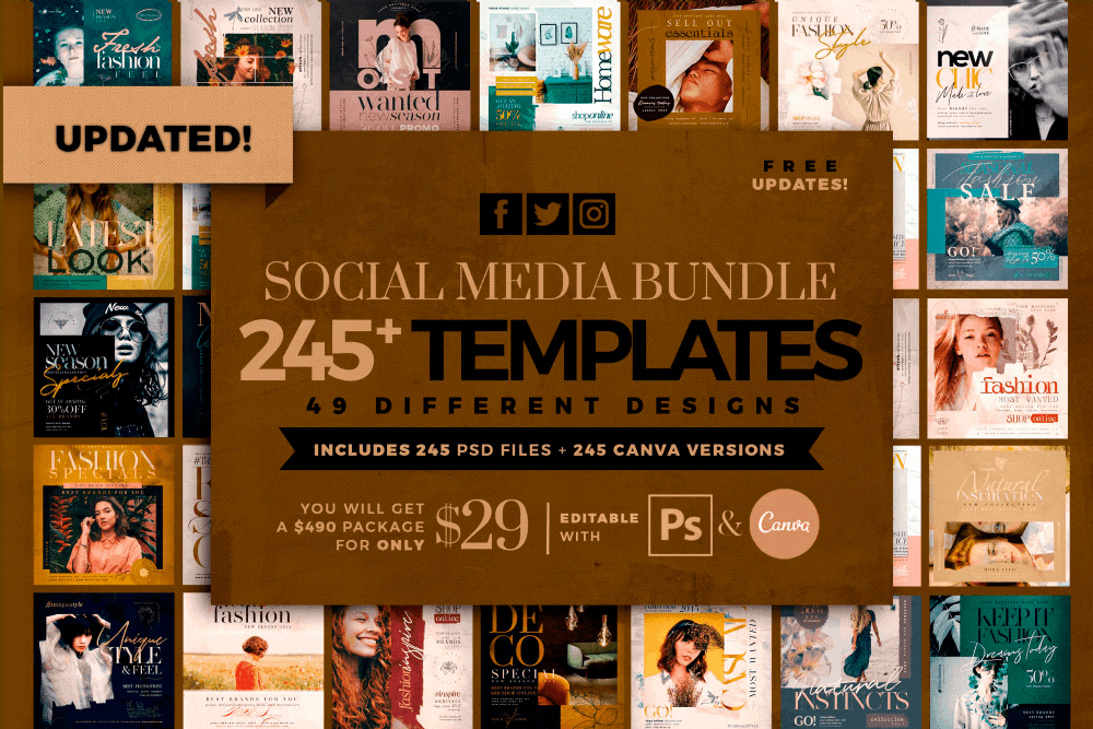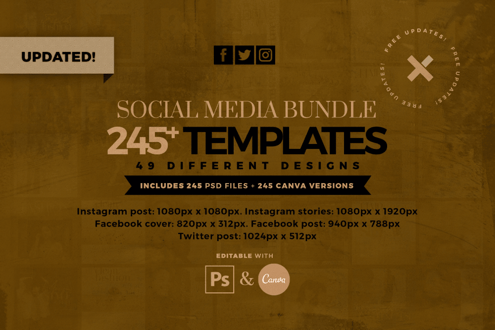 Social Media Pack with 245 PSD & Canva Templates for Facebook, Instagram & Twitter