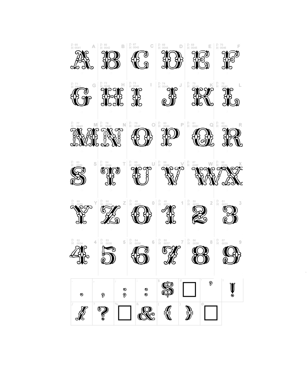 A Victorian inspired font containing only uppercase (the lowercase actually doesn’t display), numbers and special characters. Designed by Lorvad.