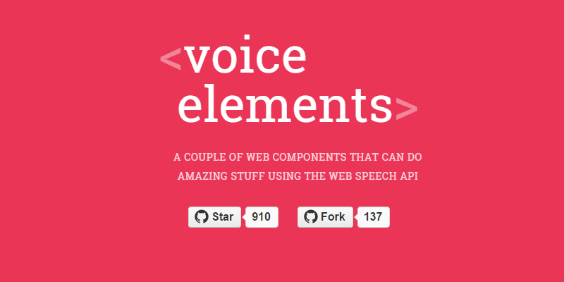 A voice component wrapper that lets you take advantage of the Web Speech API to generate voice recognition (voice to text) elements or speech synthesis (text to speech). It includes several options like autoplay, accent and text; methods like speak(), cancel(), pause() and resume() and event that cover every aspect of the recording.