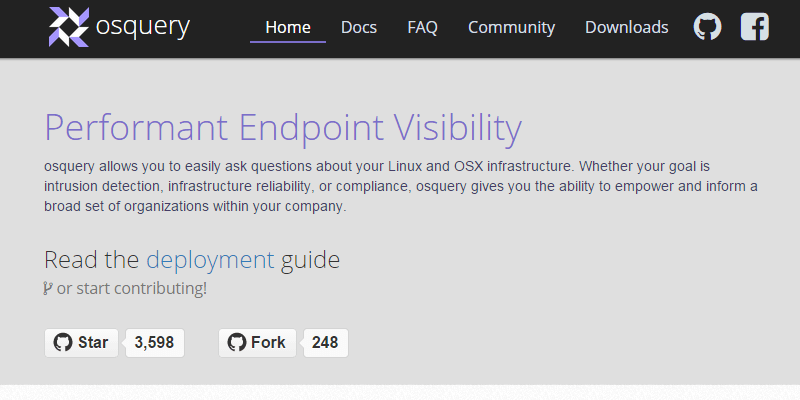 osquery is a complete tool for operating systems made in C++, JavaScript and powered by SQL. It was created by Facebook and its goal is to provide strong and accurate analytics, monitoring and instrumentation. It can be downloaded for free and implemented in any web project.