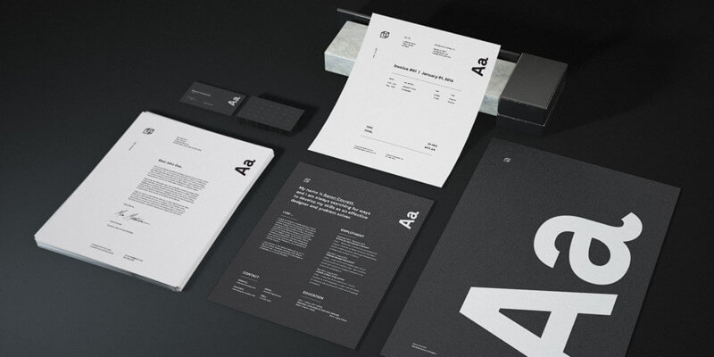 A mockup collection with 5 editable PSD files for personal or commercial use, including business cards, documents, resumes, putting together a complete identity suite. The file size weights about 846 MB