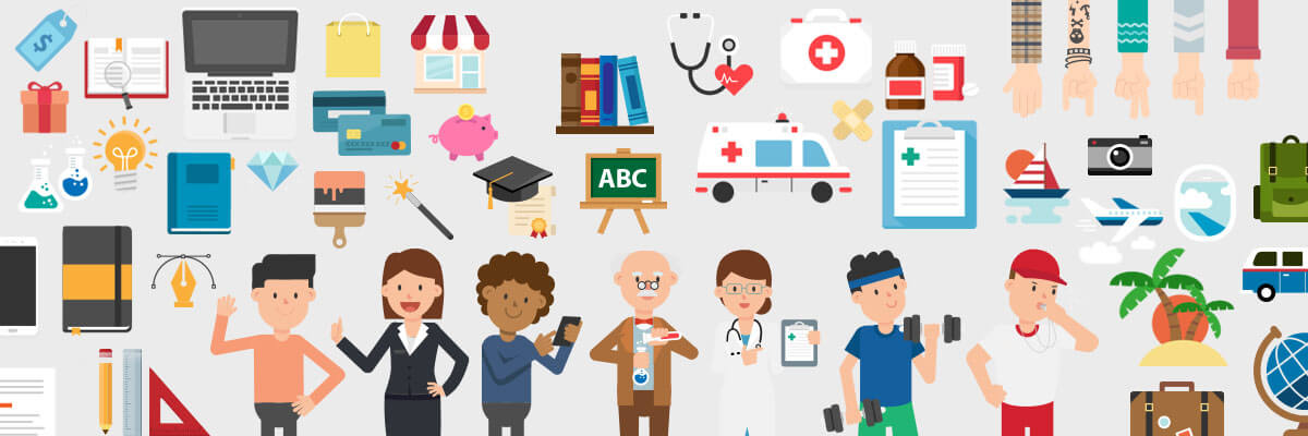 - Asset categories like Medical, eCommerce, Hand Gestures, Corporate, Casual, Travel, Education, Business, and much more!
