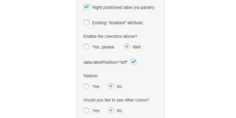 Replace the boring default checkboxes and radio buttons displayed in the browser with better-looking ones by using the PrettyCheckable plugin. You can change color settings, add keyboard functionality and expand the click/touch area a little bit, which is useful for mobile users.