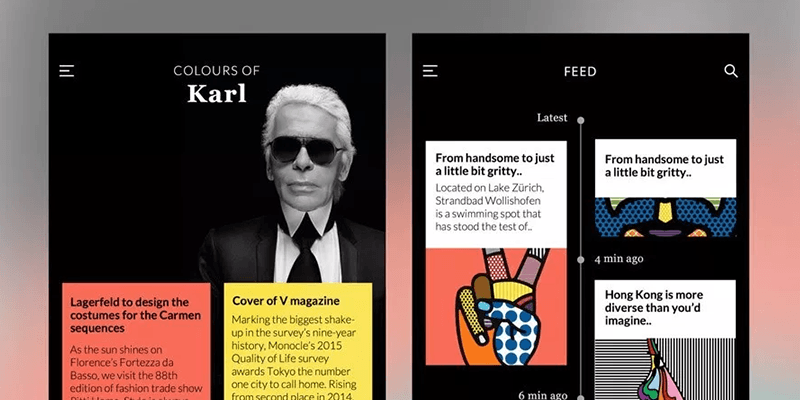 This is a simple yet elegant mobile UI kit for Sketch with a grid-card based design and a minimalistic user interface. The main card elements have a pop color signature backgrounds while the subsequent post-cards are sorted out on a vertical timeline structure. Designed by Jana de Klerk, free for personal and commercial use.