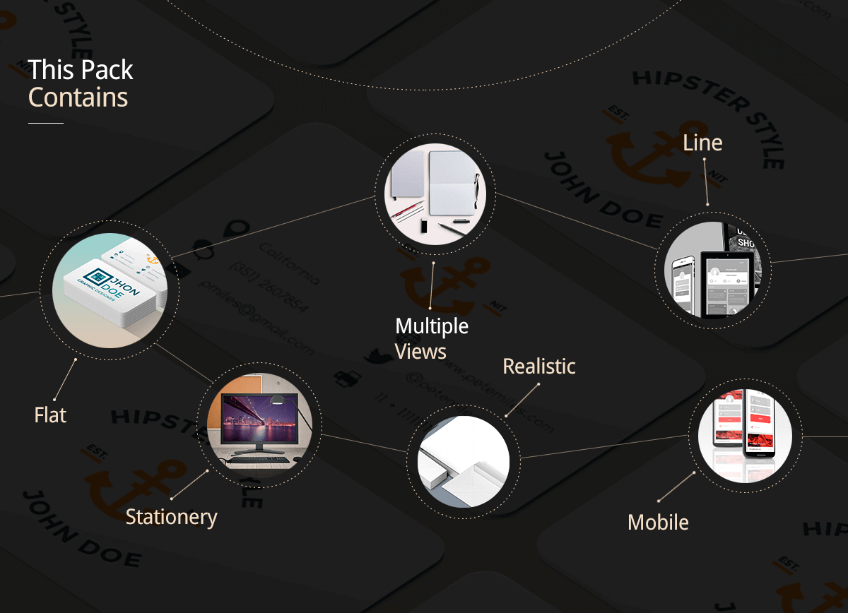 A bundle with 600 different Mockups crafted in ultra HD resolution! If you’re out of ideas while trying to create the perfect scene/mockup get this awesome and huge pack to boost up your presentations with the best style ever. All the mockups include Smart Objects, meaning that you just have to replace the design you want in each scene and that’s it, your mockups will be created with no extra effort. The possibilities are numerous since you’re taking home mockups designed in different styles (Flat, Line) and perspectives! Big thanks to our partners at Designshock and their incredible designers for this amazing set! Check out what’s inside!