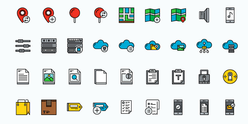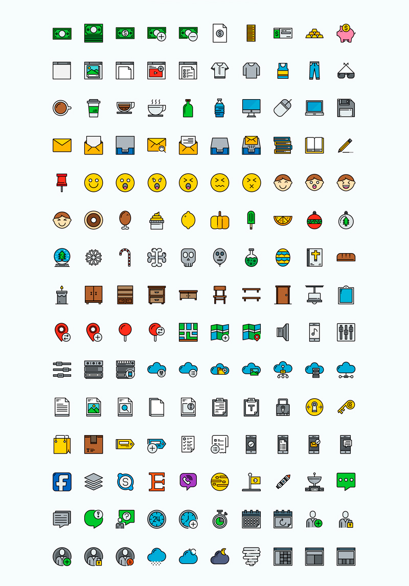 A cool collection of line and color icons in multiple formats (AI, SVG, PNG AI, EPS) easily editable in different design software. The icons cover a wide variety of areas and they are designed with a 64px grid, although they are fully scalable.