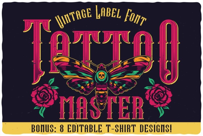 This pack features a collection of 102 t-shirt designs paired with 16 display font families featuring a total of 99 different fonts!